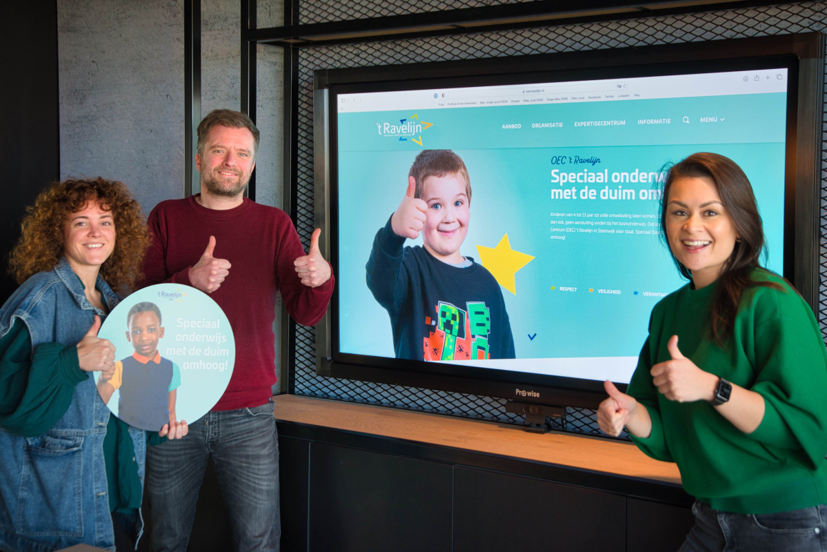 OEC ‘t Ravelijn in Steenwijk biedt een unieke combinatie van speciaal onderwijs en speciaal basisonderwijs. Daarbij werken de circa 60 medewerkers met de methode van positieve gedragsondersteuning. Dat gegeven namen wij als uitgangspunt bij de realisatie van hun nieuwe website. Speciaal onderwijs met de duim omhoog!