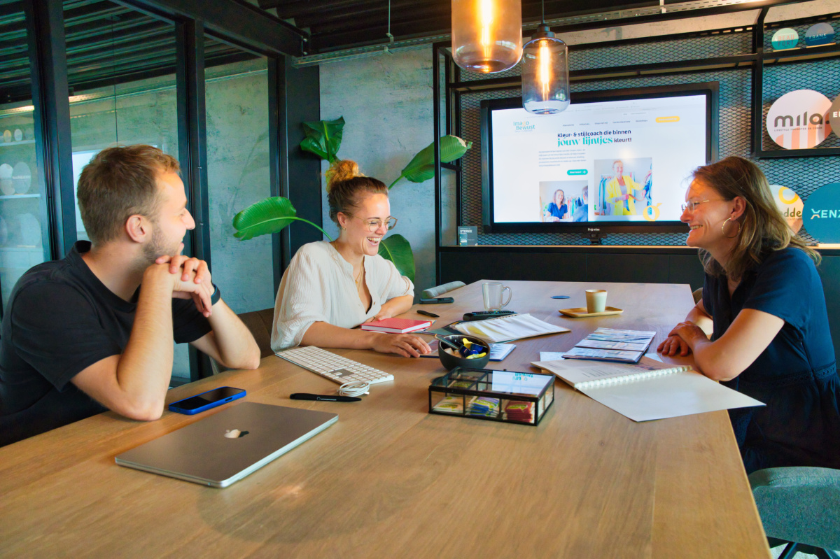 Dat begon met een identiteitssessie in onze Merkmakerij. We namen onder meer haar diensten, onderscheidende kenmerken, kernwaarden en doelgroepen onder de loep. Ook bespraken we het concurrerend landschap, de gewenste tone of voice en haar lange termijn-doelen. Dat leverde uiteindelijk een krachtig merkverhaal en concept op: ‘Geeft kleur aan je ware ik!’.